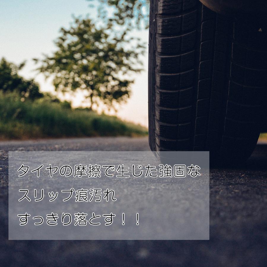 駐車場 駐輪場の床についたタイヤ痕を素地を傷めずにキレイに除去する 特殊アルカリ性溶剤配合のタイヤ痕除去洗剤